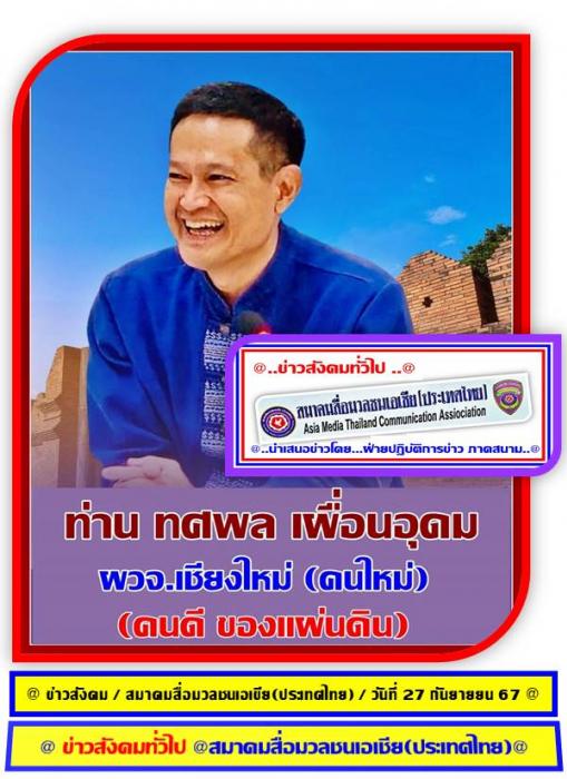 ชาวเชียงใหม่ ปลื้มใจ! ได้ผู้ว่าฯ (คนดี ของแผ่นดิน) กลับมารับใช้คนเชียงใหม่ สมความตั้งใจดังกล่าวทำให้คนเชียงใหม่ปลื้มใจไปแล้ว หลังจากนั้น ท่าน ธนกฤต กลิ่นนาค นายกสมาคมสื่อมวลชนเอเชียประเทศไทย พร้อมด้วย ท่านสมชาติ มาลัยหวล อุปนายกสมาคมและกรรมการสมาคมฯส่วนหนึ่ง ไปแสดงความยิน กับคนดีของแผ่นดิน ท่านทศพล เผื่อนอุดม คนดีของแผ่นดินที่ชาวเชียงใหม่ ปลื้มใจได้กลับมารับใช้คนจังหวัดเชียงใหม่ สมความตั้งใจ ไปแล้วดัง ตามข่าว
