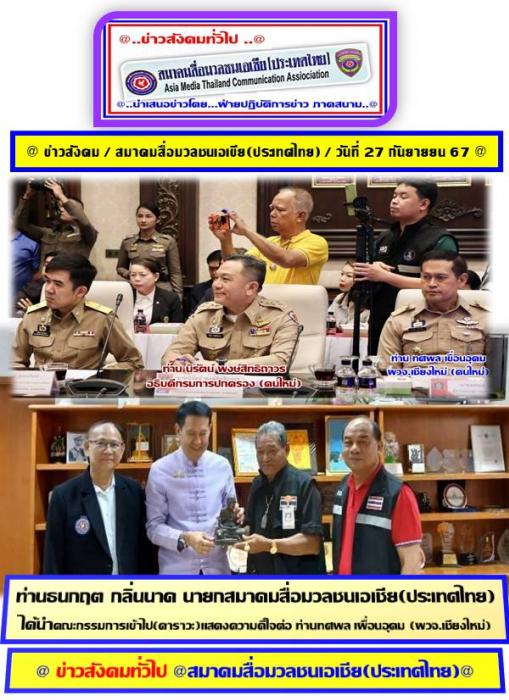 ที่ศาลากลาง จังหวัดเชียงใหม่ อ.เมือง จังหวัดเชียงใหม่ เมื่อวันที่ 24 กันยายน 2568ท่าน ธนกฤต กลิ่นนาค นายกสมาคมสื่อมวลชนเอเชียประเทศไทย พร้อมด้วย ท่านสมชาติ มาลัยหวล อุปนายกสมาคมและกรรมการสมาคมฯส่วนหนึ่ง ไปแสดงความยิน กับคนดีของแผ่นดิน ท่านทศพล เผื่อนอุดม ที่ชาวเชียงใหม่ ปลื้มใจได้กลับมารับใช้คนจังหวัดเชียงใหม่ สมความตั้งใจ ไปแล้วตามข่าว
