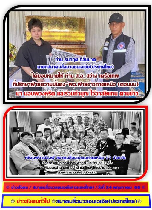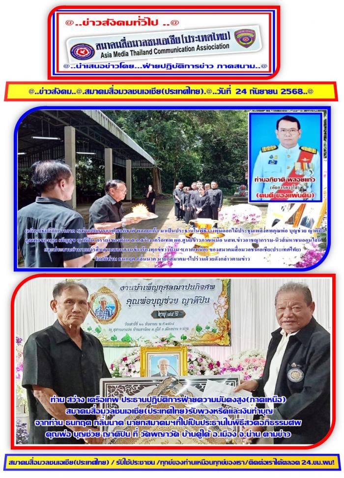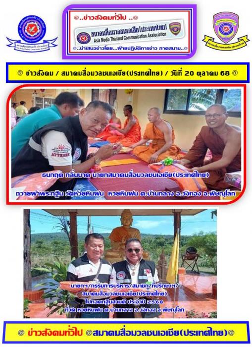 (อิ่มบุญ)ในการทอดกฐินสามัคคีประจำปี2568 ของ สมาคมสื่อมวลชนเอเชีย(ประเทศไทย) ปีนี้ไปทอดผ้าพระกฐินที่ วัด(ห้วยหินฝน) บ้านป่าขนุน ต.บ้านกลาง อำเภอวังทอง จังหวัดพิษณุโลก ท่าน ธนกฤต กลิ่นนาค นำทีม... คณะกรรมการที่ปรึกษาสมาคมฯมาร่วมกับชาวบ้านเต็มลานวัด (อิ่ม