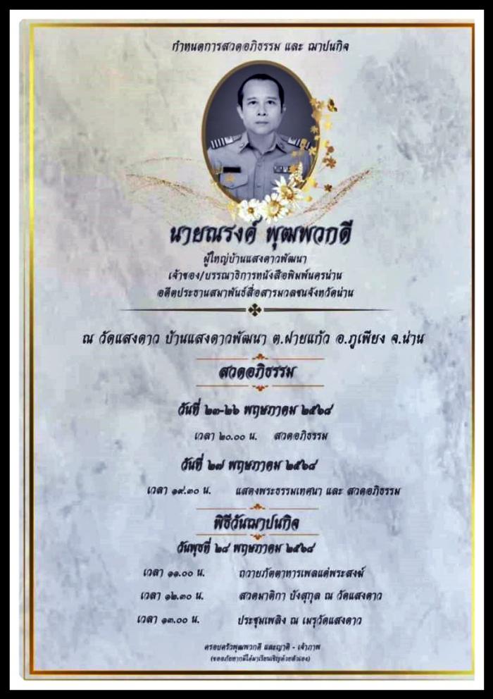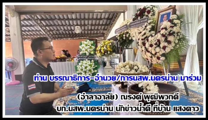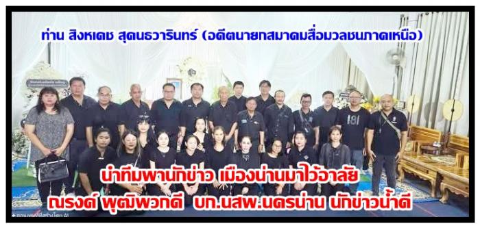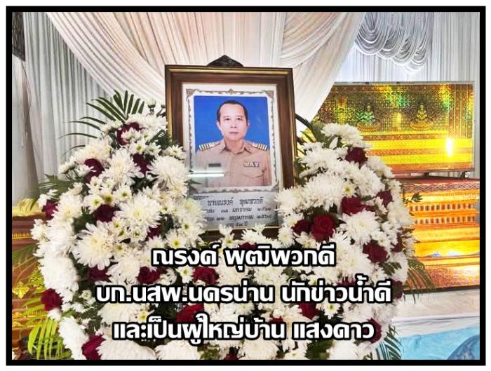 ได้มีท่าน สิงหเดช สุคนธวารินทร์ (อดีต) นายกสมาคมสื่อมวลชน ภาคเหนือฯ นำนักข่าว จ.น่าน ไป(อำลาอาลัย) การจากไปของท่าน(รง ไม่รุ่งลิ่ง) ใปเป็นประธานงานสวดอภิธรรมศพ ณ วัดแสงดาว อ.ภูเพียง จ.น่าน ที่จากไป
