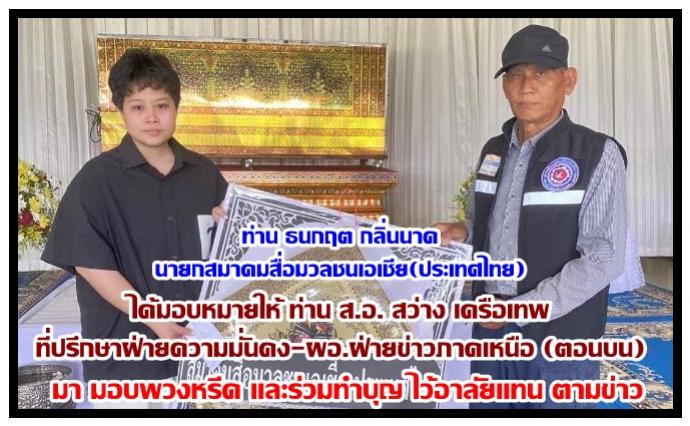 โดยมี ท่าน ส.อ.สว่าง เครือเทพ ที่ปรึกษาฝ่ายความมั่นคงฯ ของสมาคมสื่อมวลชนเอเชีย(ประเทศไทย) ไปเป็นตัวแทนนายกฯสมาคมฯผ่าน ไปแล้วตามข่าว