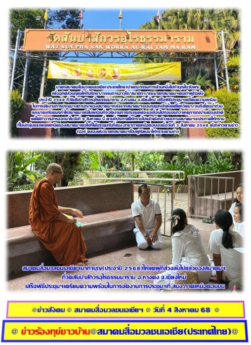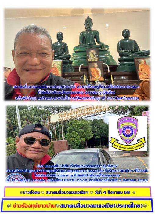 ในการประชุมฯ ครั้งนี้มีการประชุมเตรียมความพร้อมเพื้อแจ้งให้สมาชิก ทราบ ในการปฎิบัติการของสมาคมฯ ที่ผ่านมาและเตรียมความพร้อมที่ จะไปจัดงานครบรอบ สถาปนาครบรอบ 7 ปีที่กทม. ต่อไป หลังจากที่สมาคมฯ เจอมรสุมหนักๆตั้งแต่โคหวิดมา / จนถึงโดนน้ำท่วมที่แม่สอดและมารบกับเขมรอีกในปีนี้ ทำให้สมาคมฯยังไม่พร้อมที่จะจัดงานการประชุมแต่จะขอเลื่อนไปก่อนจนกว่าเหตุการณ์บ้านเมืองจะ ปกติ แต่ทาง สมาคมฯได้ จัดทำวารสาร ออกมาปกติ ในวันที่ 9 สิงหาคม นี้ ตามที่ประกาศให้ทราบไปแล้วดังกล่าวและทางสมาคมฯจะประกาศให้ทราบ ที่ไลน์กลุ่มและเพจเฟทบุ๊คของสมาคมฯต่อไปที่ได้มีการประชุมกันที่สนง.สาขาภาคเหนือตอนบนเมื่อวันที่ 3 สิงหาคม 2568 ดังกล่าวตามที่ (ปอร์ คลองตัน)นายกสมาคมฯเป็นประธานในการประชุมฯและ ได้เรียนมาให้ทราบตามข่าว (เล็ก คุ้มพระลอ - รายงาน)นสพ.ข่าวอาชญากรรมออนไลน์นำเสนอข่าวเข้าไปดูข่าวได้ที่...www.asiapress2559.com