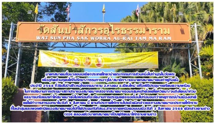 ที่วัดสันป่าสักวรอุไรธรรมมาราม อ.หางดง จ.เชียงใหม่ เสร็จพิธีทำบุญ ประชุมกรรมการ ต่อที่ สมาคมฯภาคเหนือตอนบน ตามข่าว