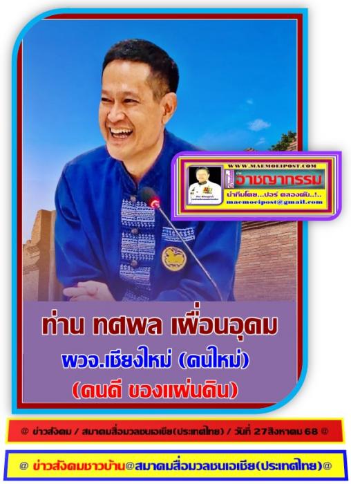 คนเชียงใหม่ปลื้มใจ! ได้ผู้ว่าราชการ(คนใหม่)ที่เคยอยู่เก่ารู้งานในเมืองเชียงใหม่ที่มาจาก(ผู้ตรวจการการ)อดีตเป็นรองผู้ว่าเก่า (คนดี ของแผ่นดิน) ครม.เห็นชอบไปแล้วท่าน ทศพล เผื่อนอุดม